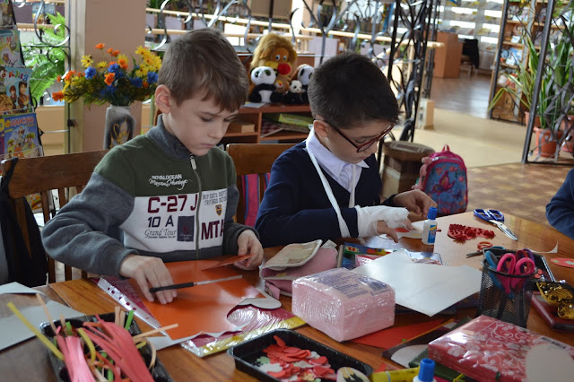 День святого Валентина – одне з найулюбленіших свят усіх людей, а найбільше наших читачів. У цей день дуже хочеться зробити приємно тим, кого любиш. Напередодні свята Центральна дитяча бібліотека підготувала сюрприз для своїх читачів, а саме виготовлення валентинок у різних техніках на арт- колажі “Велике серце”: торцювання, квіллінгу та аплікації. Сьогодні дівчатка та хлопчики з арт-майстерні “Веселі ідейки” майстрували оригінальні листівки, навчилися новим технікам роботи з папером. Дуже приємно отримати валентинку, але ще приємніше – її подарувати, особливо, якщо змайстрував цю листівку своїми руками.