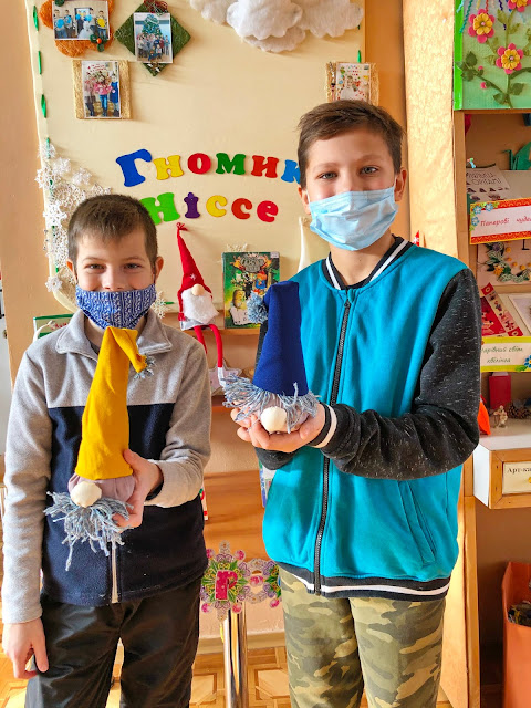Ознайомившись ближче з різдвяним гномиком Ніссе, читайлики власноруч зшили з фетру й трикотажу їх симпатичні копії. Гномики вийшли невеликі, зате дуже гарні та грайливі!