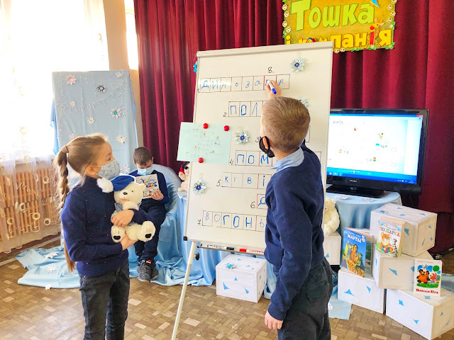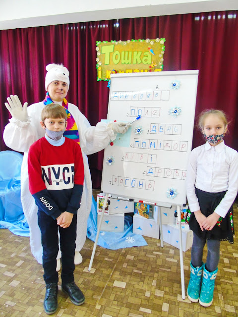 Апогеєм зустрічі стала поява самого героя – Полярного ведмедя! Гість запропонував справжнісіньку несподіванку – ребусворд, який діти з превеликим задоволенням розгадували. Наприкінці заходу усім неодмінно хотілося зробити гарне селфі з полярним гостем! Дивіться, що в них вийшло!