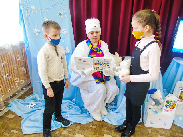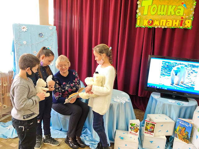 Відеорепортаж, запропонований Тошкою, допоміг дівчаткам та хлоп’ятам дізнатися усіляких цікавинок про клишоногого велетня із незграбною ходою, а потім відповідали на запитання про полярних мешканців.