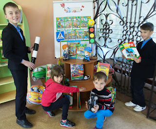 Хлопці та дівчатка згадували , що означають кольори світлофору та як треба переходити дорогу. А закріпити свої знання та дізнатися набагато більше їм допомогла виставка- застереження “Безпека дорожнього руху”, що розкинулась на абонементі